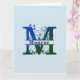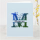 Fancy split 'M' monogram in blues and greens with silhouettes of fancy flourishes and butterflies. Add your own name as centre text.