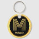 Gold Monoton letter 'M' monogram design with golden ring border. Easily change name or delete. Perfect gift for any occasion!