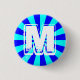 White, grungy monogram on top a funky aqua and blue starburst pattern.