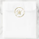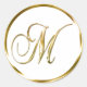 M Monogram Faux Gold Envelope Or Favour Seal. These classic round stickers are printed with non metallic ink on a flat sticker to look like gold. They are not beveled or embossed monograms but are designed to look like they are beveled or embossed monograms. These gold monogram seals are printed on a white background unless you select a different colour background before you proceed to checkout. In addition to being pretty wedding stationery supplies, these elegant wedding invitation envelope seals also make great monogrammed custom Christmas card seals, personalised holiday greeting card envelope seal stickers and customised Xmas card monogram seal stickers.