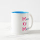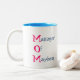 White and teal M.O.M. Manager of Mayhem Mug