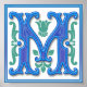 Inspired vintage M initial in blue, white and purple. Vintage monogram letter M created by print2d and licensed from Clipartto.com. Derivative design work by VintageCabaret.