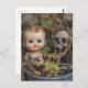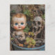 Macabre Doll and Skeleton in a Plant Postcard