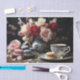 A perfect teatime - lush, soft-petaled roses and other blooms steal the spotlight from picture-perfect macarons.