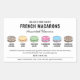Fully customisable Macarons Flavours Label for Assorted Boxes. Featuring 6 macaron flavour graphics which allow you to change the macaron shell and filling colours, trendy fonts, your bakery name and contact details. You can add/remove macarons as you need to create as many flavours as you need. Create professional macaron flavour menu sticker for your gift boxes or assorted macaron towers.