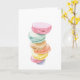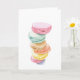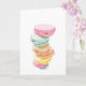 Illustration of a delicately balanced tower of pink, green, orange, brown and yellow macarons. A French speciality and a delicious card or gift for a special friend or anyone who love sweet things.