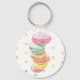 Illustration of a delicately balanced tower of pink, green, orange, brown and yellow macarons. A French speciality and a delicious card or gift for a special friend or anyone who love sweet things.