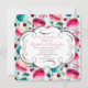 A fancy wedding design with a sweet theme. The background is a pattern of pink and teal green macarons tumbling all around. Light green polka dot stripes behind. A fancy decorative frame holds your wedding information which you can easily personalise.