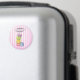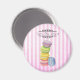 A magnet with a fancy watercolor design of sweet and delicious french macarons stacked up on top of each other. Pretty pastel colours - purple, lime green, yellow, pink and blue. Set on a pink striped pattern background. The text says "Yums the word" cute pun but it is also customisable with a name or other words such as sweet life, delicious, bon appetit, or whatever else suits your mood.