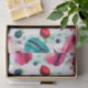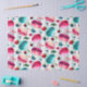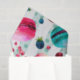 Tissue paper with a watercolor pattern of sweet and delicious french macarons tumbling all around. Pretty watercolors - pink, red, and teal green. Random berries floating around too including strawberries, cherries and blueberries. Fresh and delicious. Set on a green polka dot background.