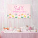 Sweet and lovely macarons on a modern pink banner for a Sweet 16 birthday party.