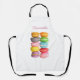 Two rows of pastel coloured macarons cookies with personalised name at the top. Great gift for the baker in your life. Great customised aprons for bakeries.