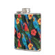 Macaw And Hibiscus Pattern Hip Flask