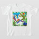 The t-shirt feels and looks great quality, a good thick cotton. It will be a little big for my son, but that means he will be able to wear it and not out grow it too soon. The print was as described on the order when personalised. True size, shape and colour T-shirt- thanks.
