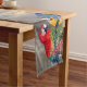 Wonderful collage of vintage fine art of four different kinds of Macaw Parrot Birds, Orchid Flowers and tropical Plants with a Rain Forest during a misty rainy season in the background is on this Tropical Table Runner. Images are public domain due to expired copyright. Collage is by me.