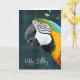Close-up of macaw parrot with bubbles on plaid background for birthday.
