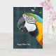 Close up of macaw parrot with bubbles on plaid background for Name Day.