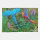 Original fine art design of colourful macaw parrots in the jungle by artist Carolyn McFann of Two Purring Cats Studio printed on a quality, machine-washable American Mojo kitchen towel for parrot fans.