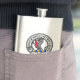 The product is a good size and came exactly as it was pictured. The lid is not attached to the flask, which could be dangerous on drunken nights... The print came out surprisingly well and looks very sharp. Would definitely recommend.