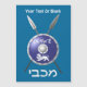 A depiction of a Maccabee's shield and two spears. The shield is adorned by a lion and text reading "Yisrael" (Israel) in the Paleo-Hebrew alphabet. "Maccabee" also appears in modern Hebrew. Add your own additional text.