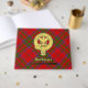 Clan MacDonald of Keppoch crest badge surrounded by a strap and buckle over tartan background. Custom front, back and spine text.