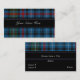 Stately looking business card template, done in a traditional colourful Scottish Tartan Plaid, of the MacDonald clan. A solid black stripe over the blue and green plaid, has white coloured text. On the reverse side is a black text area and plaid accent, at the top.  Personalise all the text to suit your needs.