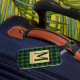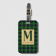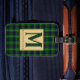 Handsome luggage tag features design celebrating your Scottish heritage, features monogram letter M in Clan MacDonald tartan plaid with matching background and customisable text