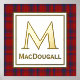 Classic tartan plaid foil print, with a gold foil framed in text area, against the Scottish clan MacDougall tartan pattern background. A large single letter monogram and gold foil name are ready to personalise.