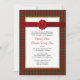 Elegant clan MacGregor tartan plaid, sets the backdrop for this Scottish inspired wedding invitation. Graphics of a gold edged white text overlay has graphics of a red satin looking ribbon, with a faux red wax seal, at the top. All text and monogram is ready to personalise for your special day. Matching products are available.