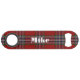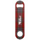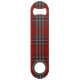 Custom speed bottle opener done in the classic red, blue, green, and white Scottish MacFarlane clan tartan pattern. Personalise the bold white text, on the front, for yourself or as a great little gift idea for him.