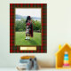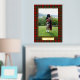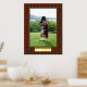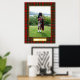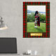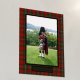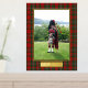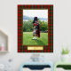Colourful tartan plaid foil print, with a gold foil framed in photo area, against the traditional Scottish clan MacGregor tartan pattern background. A gold foil plaque, on the bottom has dark green custom text. Personalise with your photograph and text.