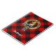 Clan Gregor or MacGregor crest badge surrounded by a strap and buckle over Rob Roy tartan background. Custom text.