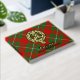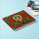 Clan Gregor or MacGregor crest badge surrounded by a strap and buckle over tartan background. Custom front, back and spine text.