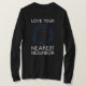 I love this shirt. I had written to the artist asking her if this picture was available on a shirt, and she wrote me back telling me where I could find the shirt. These shirts can be custom made to have a different saying. I loved this saying and went with it. The artist wrote me back later to tell me that she had seen my order go through. How's that for service? Pretty special. It's just as displayed. Perfect!