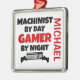 This ornament featuring the quote "Machinist by Day Gamer by Night" is perfect for any machinist that loves playing video games.