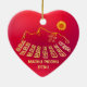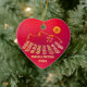 Beautiful heart ornament with Machu Picchu Cusco Peru silhouette drawing and sun with swirling rays on red background. Ideal for people who love Mother Nature!