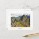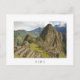 Postcard of the ruins of the ancient Inca city Machu Picchu in the Sacred Urubamba Valley near Cusco in Peru with a white border and the text: 'Peru'.