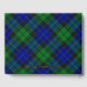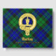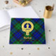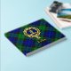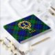Clan MacKay crest badge surrounded by a strap and buckle over tartan background. Custom front, back and spine text.