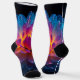 This pair of Aurora Bloom socks radiates from a golden core through hot pink into translucent azure petals. Each sock showcases the complete artwork as a singular focal point. A fusion of vintage botanical inspiration and AI imagination