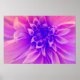 A macro image of a big pink dahlia flower with delicate funnel shaped petals and a dark purple centre.