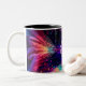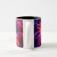 This Radiant Riot mug features intense magenta petals blooming from a deep midnight blue starry center. A fusion of vintage botanical inspiration and AI imagination