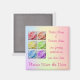 Six rainbow coloured macro roses. Add your own text to this customisable save the date magnet.