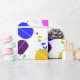 Macron Confetti Wrapping Paper features a sweet cookie design in bright blue, yellow, lime green, purple and pink. Designed by artist Jodi L. Lopez. Find more party supplies with this design in the collection.