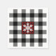 These seasonal black and white plaid pattern paper napkins have a red and black Buffalo plaid centre square with a large white snowflake on it.
