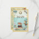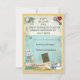 Elegant, whimsical vintage Alice in Wonderland collage neutral RSVP Bring a Book Baby Shower tea party flat cards perfect for showers for boys or girls. On the front of these cute shabby chic blue, yellow and white invitations is the colourful mad hatter with a cup of tea and a slice of bread and jam. He is talking to the grinning Cheshire cat who is sat on a pile of books. The white rabbit is beside him holding his gold pocket watch. The background is a beautiful vintage colourful blue journal paper with flowers, an antique brass key, glamourous gold pocket watch, pretty white daisies and blue roses with a stylish yellow hearts border . On the back is the same background with the addition of an Alice's Adventures in Wonderland antique book, a teapot, jam tart heart and an open book . All of the text is fully customisable to meet your needs and you can change the font style, colour and size of font if you desire. If you need any assistance customising your product please contact me through my store and I will be happy to help. PLEASE NOTE: All invites on Zazzle have flat printed images.