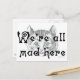 Alice in Wonderland's Cheshire Cat says "We're all mad here" on T shirts & gifts.