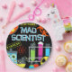 Mad Scientist Birthday paper plates, a great design that features test tubes, a jar of eyeballs, beakers, and more with blue text edged with white that reads Mad Scientist! We have the matching mad scientist birthday invitations, T-shirts, and chocolate dipped Oreos!