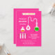 This modern and eye-catching invitation is ideal for a Mad Science theme party. It features a “Science Laboratory” sign and a few lab instruments on a solid colour background. This hot pink design is great for a curious and adventurous girl. Add your own wording.