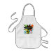 This apron is made with a durable fabric! My grandson LOVES it! The shape provides great coverage to protect clothes from paint spatters, etc. The print quality is excellent! The detailed lines of the dragon drawings are printed in a crisp, clean manner.