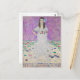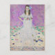 Famous Mada Primavesi portrait by Gustav Klimt. This painting features a girl in a white dress with flowers in front of a purple background. Lovely colours on this artwork.